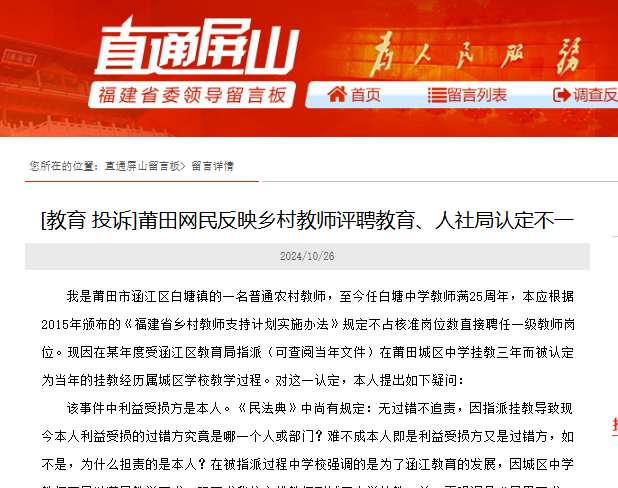 莆田:乡村教师挂教城区难享职称评聘优待?