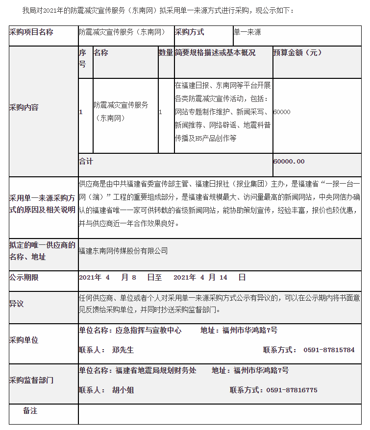 应急指挥与宣教中心防震减灾宣传服务(凯发k8)采购公示