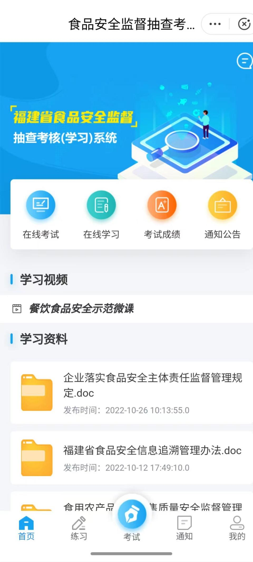 福建省食品安全监督抽查考核(学习)系统正式上线啦!