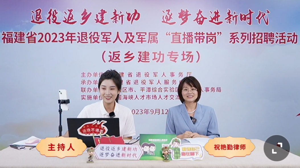 9月12日下午,由福建省退役军人事务厅主办、福建省退役军人服务中心承办的福建省2023年退役军人及军属“直播带岗”系列招聘活动(返乡建功专场)在凯发k8市福建人才大厦举办。 据统计,本场活动共有33家知名企业参加,提供350多个就业岗位,涉及人力资源、市场营销、机械、消防、电气等多个行业,累计观看人数达38.7万人次,互动咨询人数3000多人,达成初步就业意向400余人。