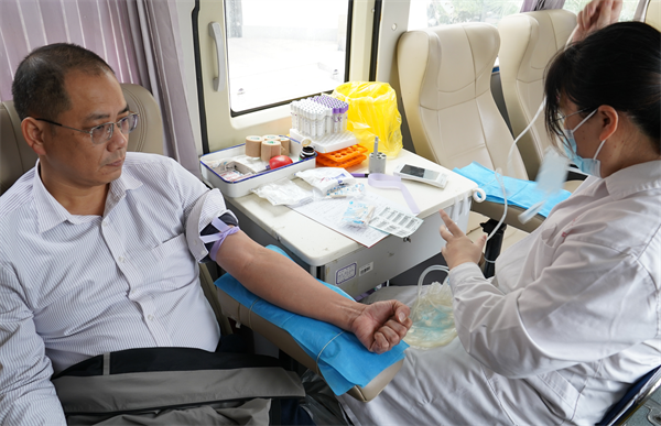老兵林武汉(左)无偿献血 以热血传递冬天的一份温暖。主办方介绍,活动旨在把军人甘于奉献、不怕牺牲的优秀品质和退役不褪色的精神深度结合起来,进一步发挥双拥示范引领作用,在守护生命中树起退役军人的红色大旗,用自己的热血温暖更多的人。 |