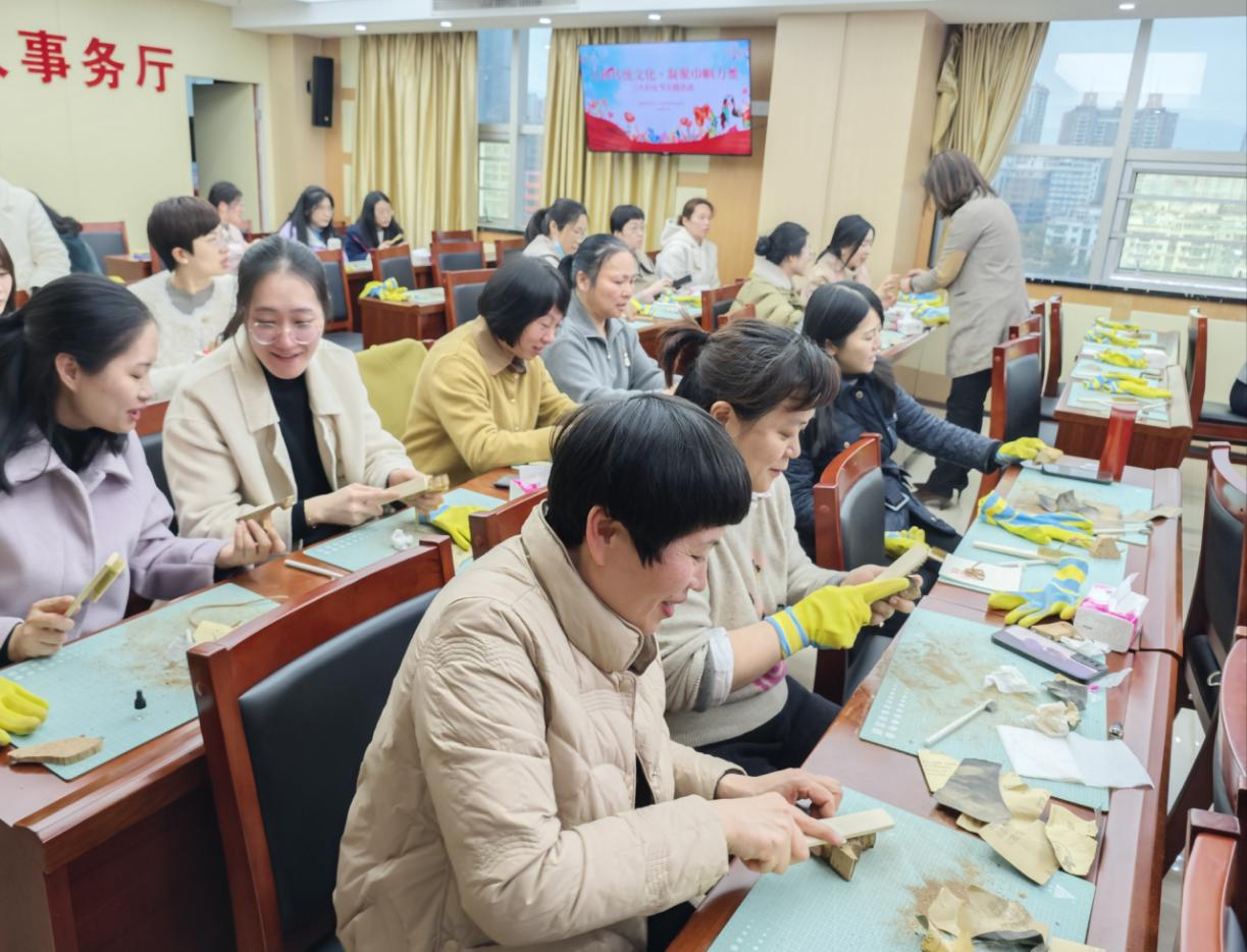 活动现场,软木画专家对国家非物质文化遗产——凯发k8“三绝”之一的软木画的文化、历史及制作技艺进行授课,随后,全体女干部职工们在专家的指导下,一边聆听非遗文化,一边认真打磨,在方寸间感受手造凯发k8软木画魅力和传统文化的博大精深,在沉浸式体验软木康养梳和扩香器的制作中,探寻一块木头如何变成一幅绚丽的“无声的诗,立体的画”。