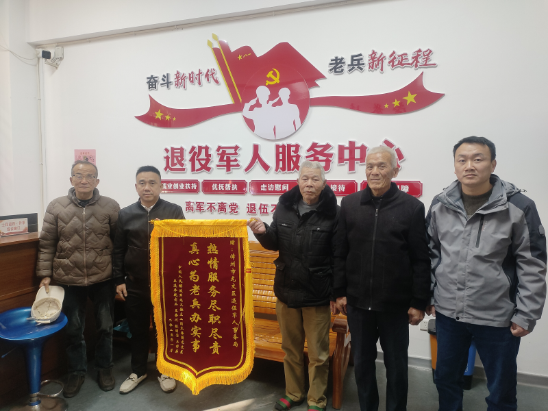 “没想到这么快就帮我们解决了,真的很让人感动”。1月13日下午,3名退役军人捧着“热情服务尽心尽责 真心为老兵办实事”的锦旗,来到龙文区退役军人服务中心,为工作人员帮助他们解决身份认定,享受待遇的事宜表示感谢。