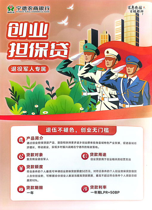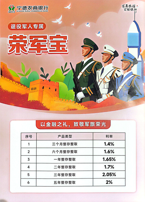 根据双方合作协议,宁德农村商业银行将推出“拥军贷”专属服务,开通绿色审批通道,在融资授信、利率费率、信用额度方面给予支持,向退役军人设计专属个人金融服务方案,提供退役军人专属存款产品“荣军宝”;为退役军人创办企业提供“开户-结算-融资-理财”全链条服务,包括免费开户、电子银行服务费减免、资金结算优惠,以及“福农e付”收单手续费减免;为重点退役军人企业提供财务顾问服务,协助对接产业链资源。