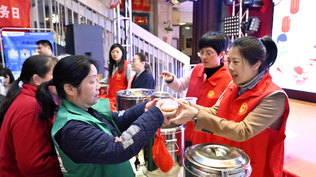 活动现场,暖意融融。志愿者们提前抵达社区,与社区工作人员通力合作,将提前熬制好、温热可口的拗九粥整齐摆放。有的引导居民有序排队,有的耐心为老年朋友盛粥,有的细心叮嘱老人注意保暖,空气中不仅弥漫着拗九粥的甜香,更充满了邻里相伴的温情。 “阿公,这碗拗九粥送给您,祝您身体健康,笑口常开!”志愿者们联合部队官兵组成送粥小队,端着热气腾腾的粥碗,优先走进社区独居老人、困难群众、高龄老人和高龄退役军人家中。官兵们与志愿者一同陪老人促膝长谈,细心询问老人的身体状况、饮食起居和实际需求,用朴实的行动传递关怀。老人们接过温热的粥碗,脸上洋溢着幸福的笑容,拉着官兵和志愿者的手连声道谢:“这粥真甜,心里更暖!”现场满是军民同心的暖心氛围。