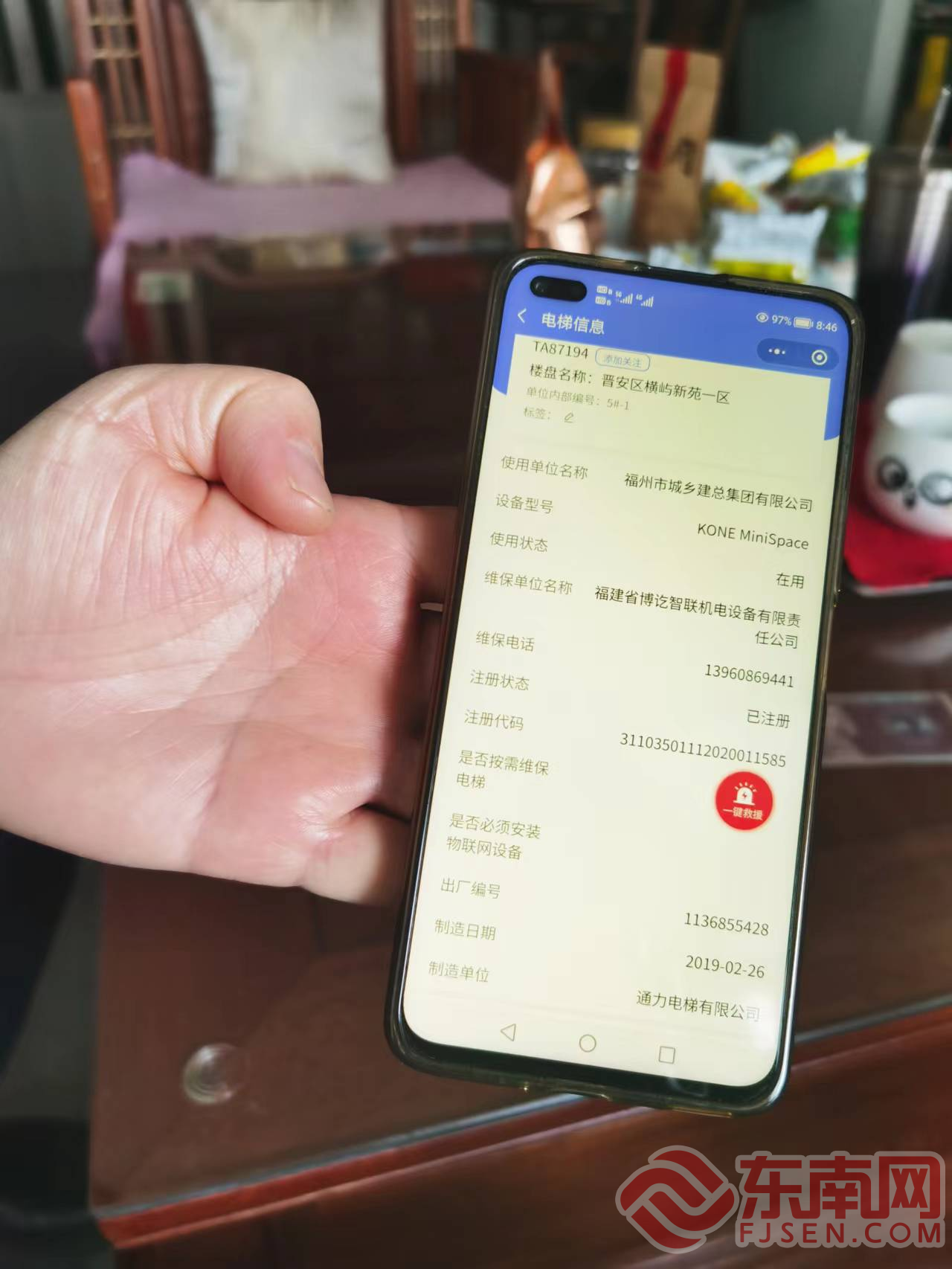 当日,电梯维保单位委托第三方检测机构四川升瑞达机械设备检测有限公司福建分公司前来检测指导。检验员莫慧甲在电梯轿厢内外及林先生家中进行分贝测试后表示,电梯运行噪音的检测值在正常范围内。